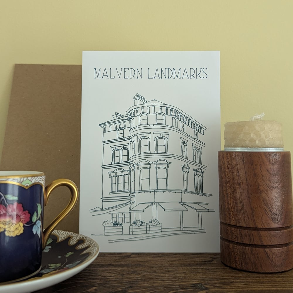 Beautiful illustration greeting card for a Malvern lover. Part of the Malvern Landmarks series detailing sites around the historic town, aside from the hills.