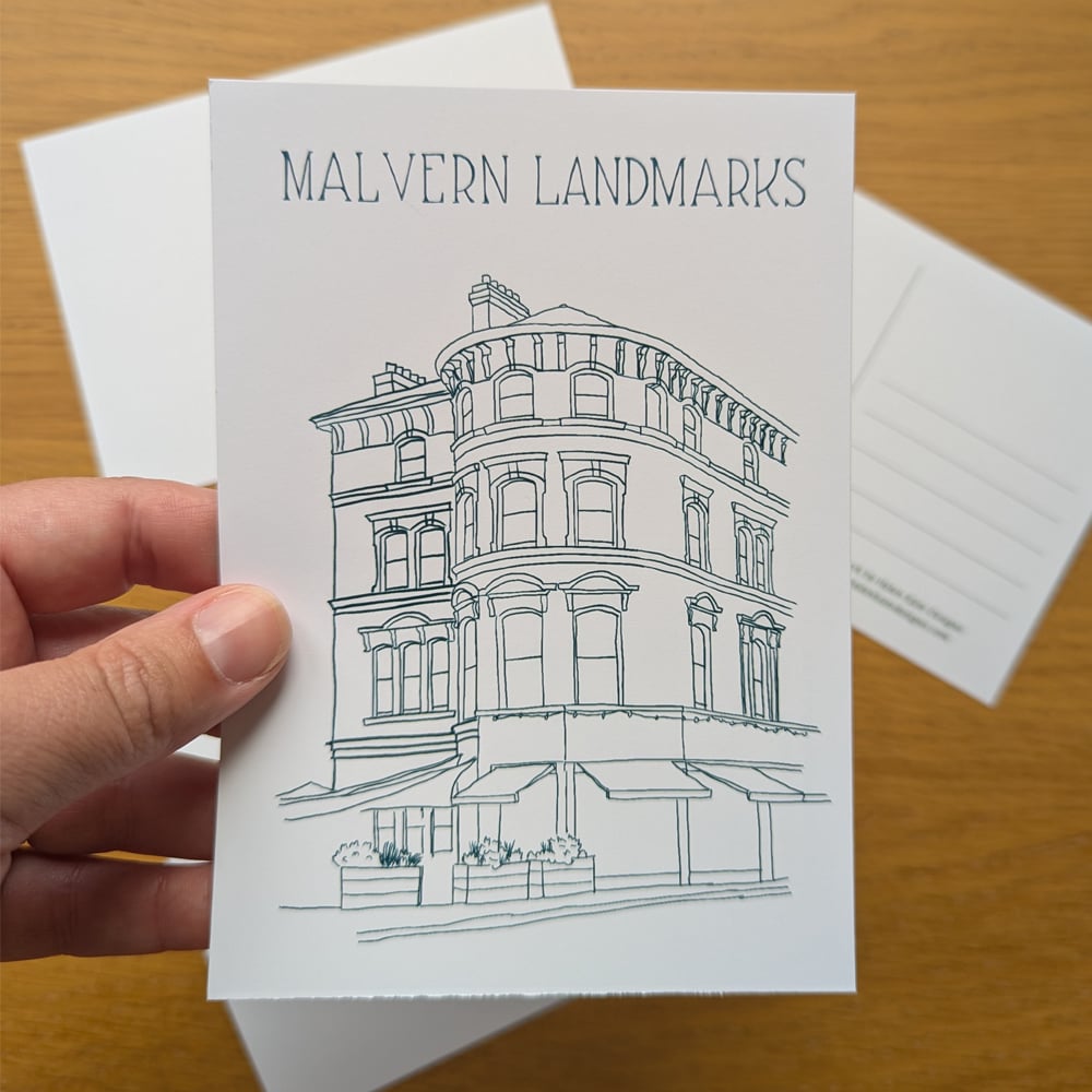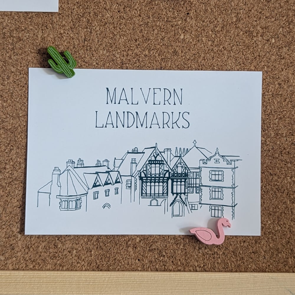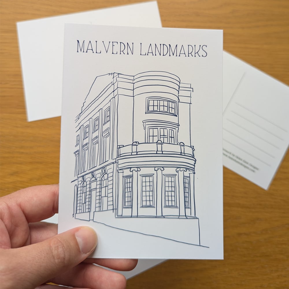 Beautiful, hand-illustrated postcards. Part of the Malvern Landmarks series detailing sites around the historic town, aside from the hills.