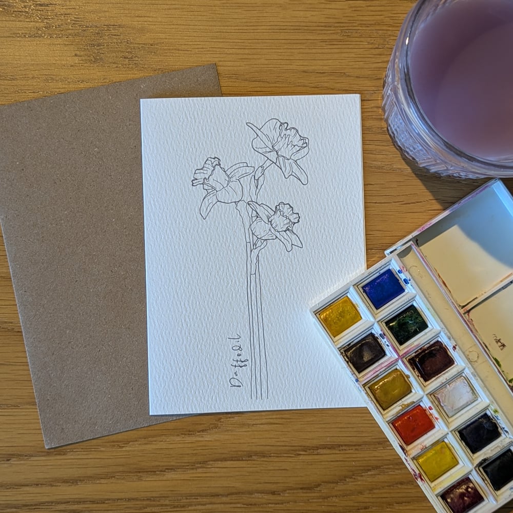 Hand illustrated design printed on white, watercolour, 300gsm card paper-stock for a beautiful painting finish, coloured pencils and pens would also be a beautiful medium.