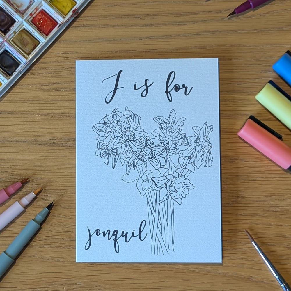 Hand illustrated design printed on white, watercolour, 300gsm card paper-stock for a beautiful textured paint painting finish. Coloured pencils and pens would also be a beautiful medium to use.